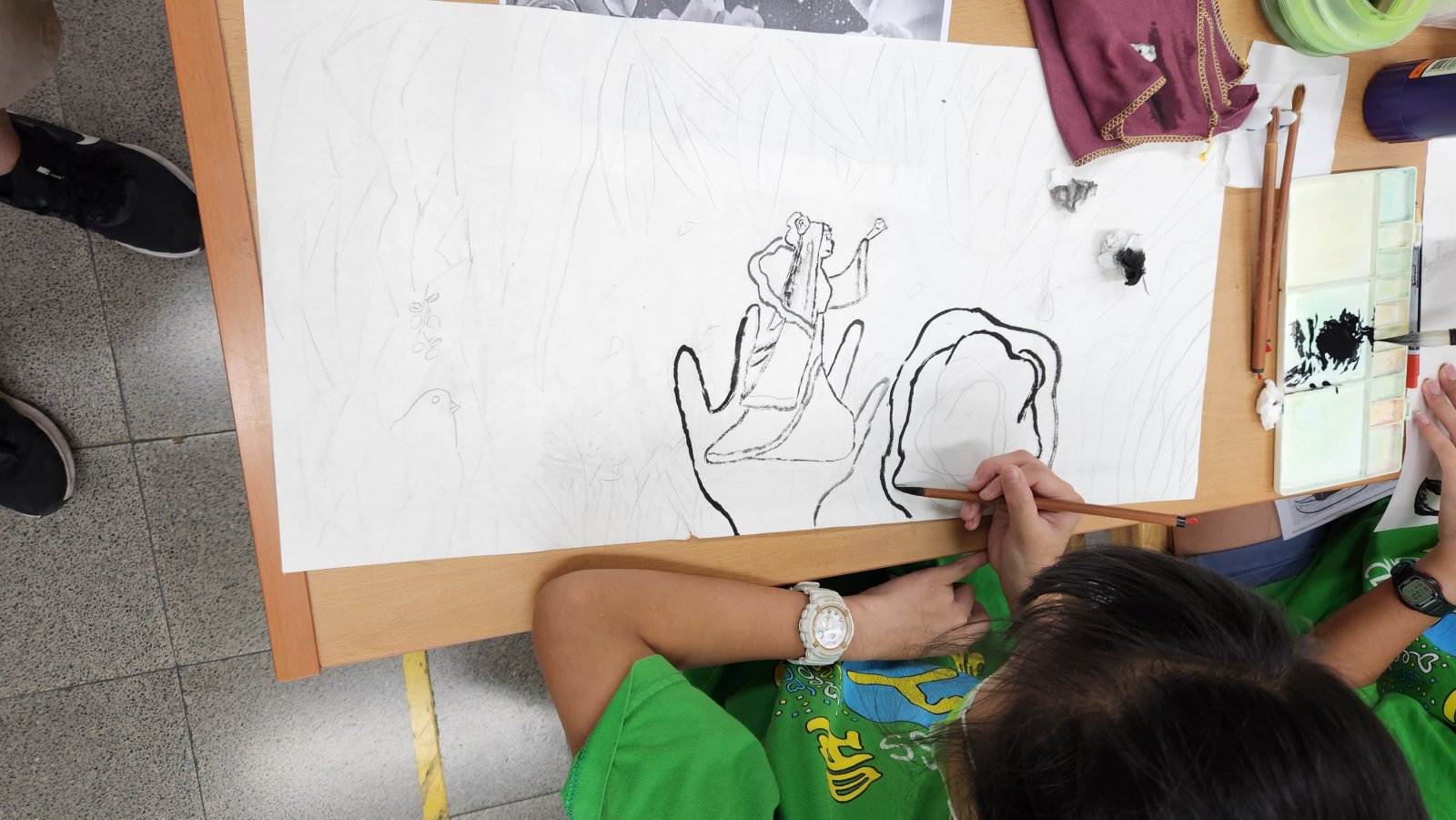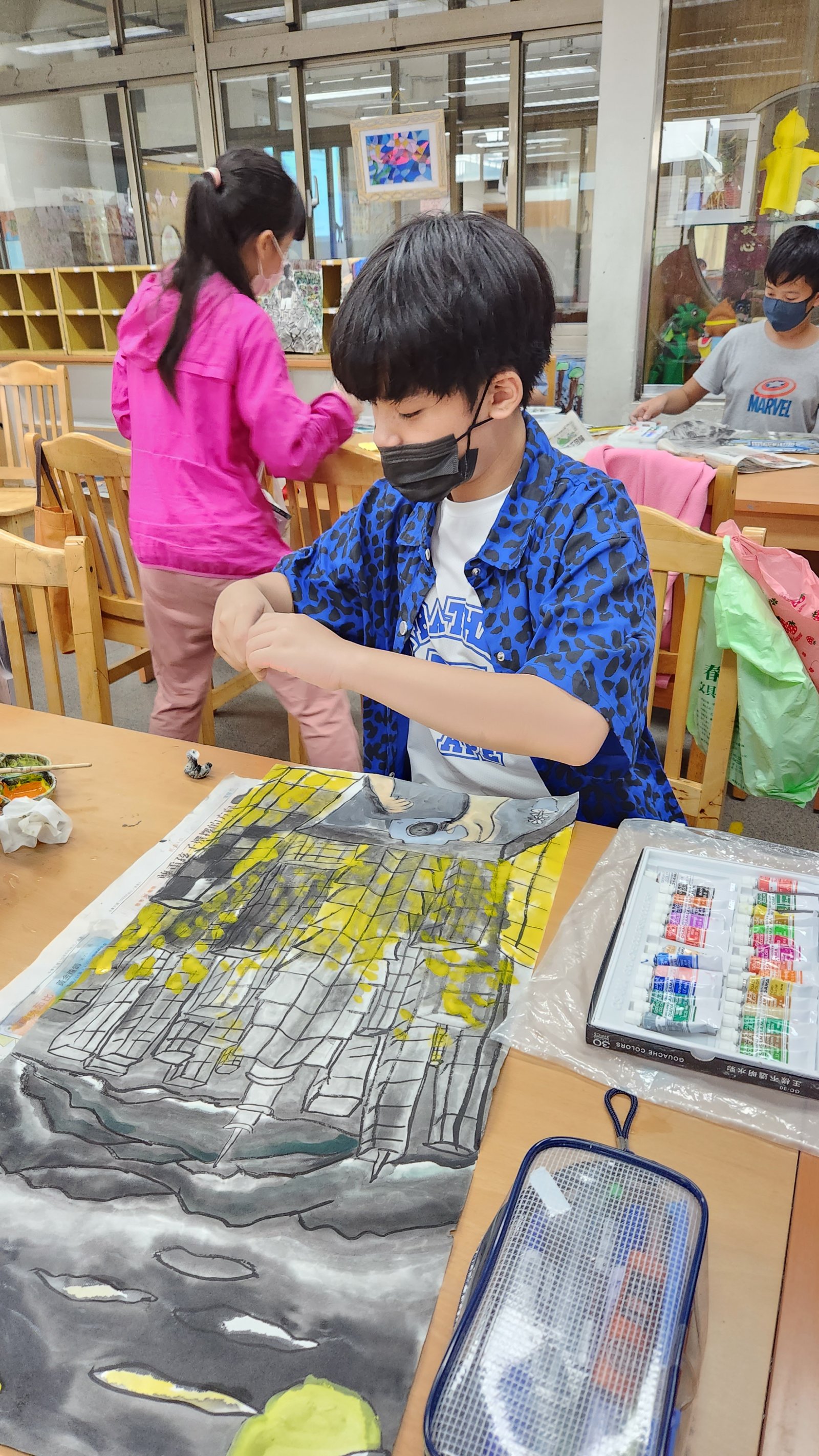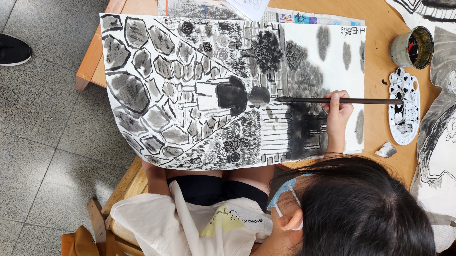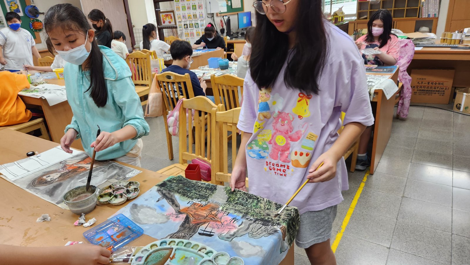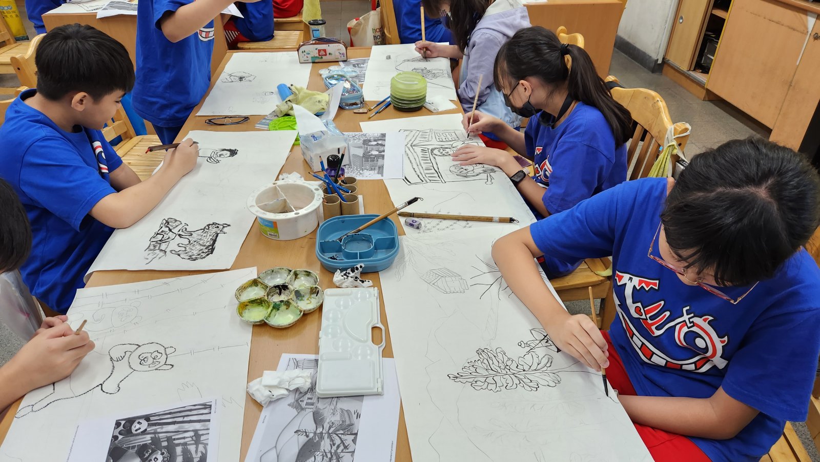 課程設計是由學生的日常生活經驗出發,指導學生運用作文寫作技巧-6何法(人、事、時、地、物以及如何),撰寫出關鍵提示詞,再結合AIGC生成式繪圖文生圖的功能,製作出設計概念圖,接著再指導學生運用構圖法則以及水墨技法進行創作,完成出一幅幅令人驚豔、充滿想像的作品。